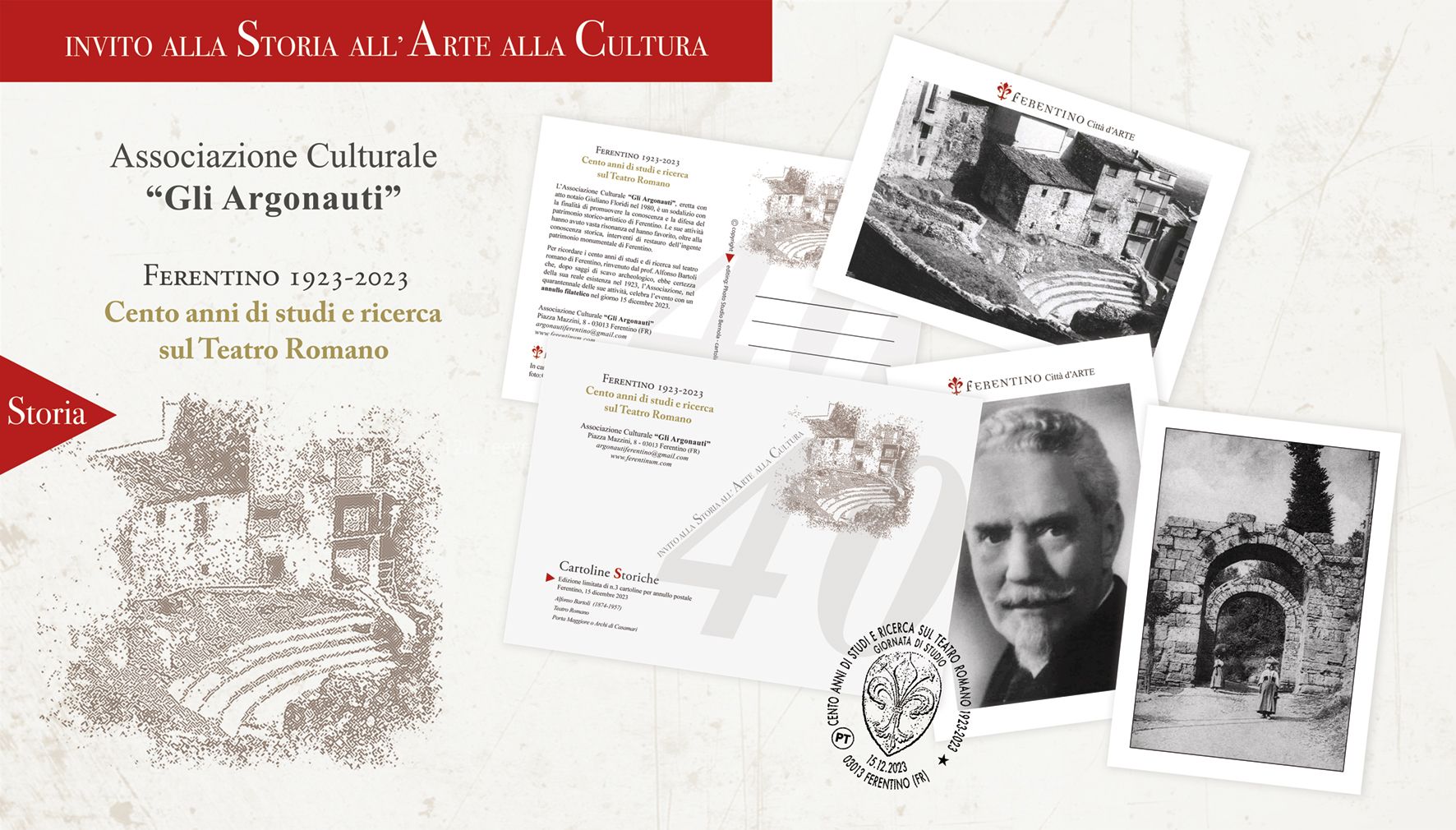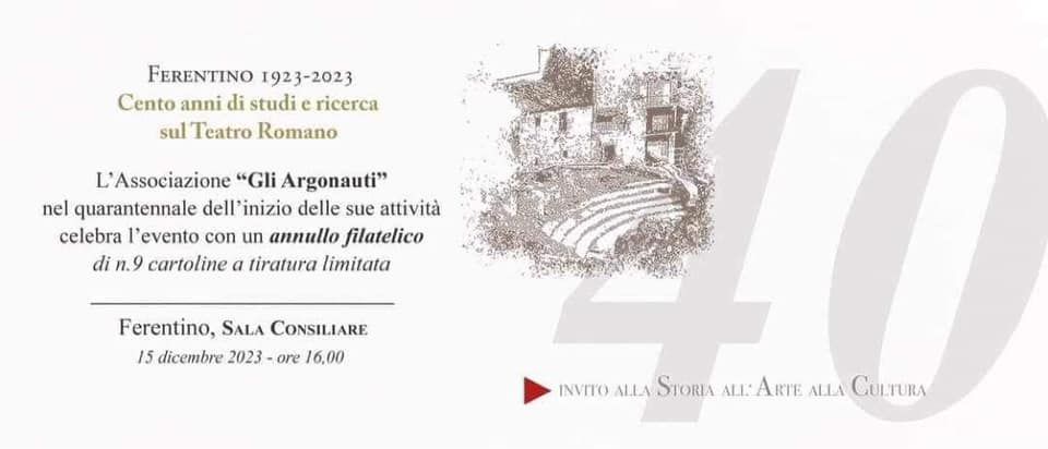 Ferentino, 15 dicembre 2023 ore 15.30 Palazzo Municipale, piazza Matteotti Annullo postale speciale 1923-2023 Cento anni di studi e ricerca sul teatro romano di Ferentino - giornata di studio