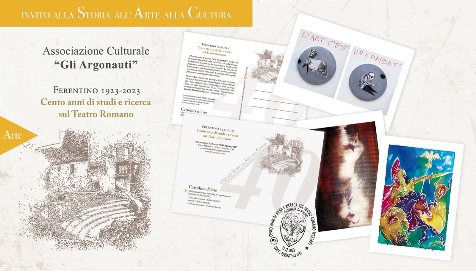 Tre cartoline della serie L'Arte sono opera artistica di Fulvio Bernola , Butterfly; di Emiliano Recchia, L'art c'est un combat; di Fabio Altobelli, Arminio.